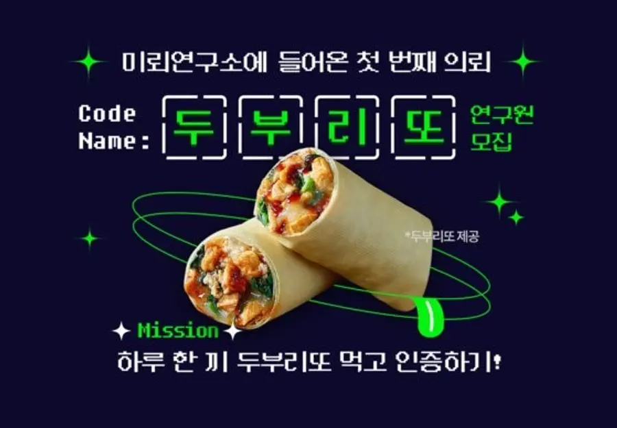 대표 제품인 단백질 두부리또를 5일간 매일 한끼 식사 대신 먹으며 단백질도 섭취하고 체중 관리도 할 수 있는 챌린지로, 매일 두부리또로 한 끼 식사를 하고, 지글지글클럽 내 미뢰연구소 페이지에서 설문을 참여하면 된다. 역시 헬시 플레저를 직접 체험하게 하는 방법이다.