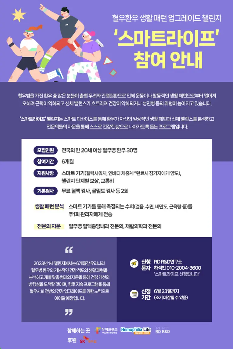 SK케미칼은 혈우병 환우 건강 지원 프로그램인 ‘스마트라이프’ 챌린지를 진행한다고 7일 밝혔다.