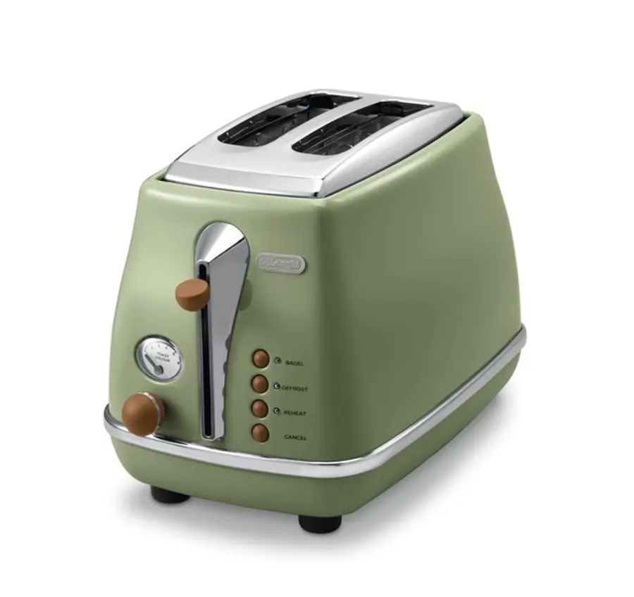 그 중에서도 올리브 컬러는 빈티지 컬러들 중 가장 기존 인테리어에 자연스럽게 어우러지는 컬러다. 특히 드롱기의 ‘아이코나 빈티지 토스터’ 올리브 그린은 짙지 않은 파스텔 톤의 그린 컬러로 Y2K 감성은 물론, 매끄러운 라인과 유광 디자인으로 고급스러움을 둘 다 잡을 수 있다. 수세기에 걸친 다양한 디자인에서 영감을 받은 드롱기의 이탈리아 디자인 헤리티지를 오랫동안 유지해온 만큼 디테일도 클래식하면서 레트로한 무드를 만들어 낸다. 굽기 조절 레버는 디지털이 아닌 아날로그 형식의 계기판으로 디자인되어 전체적인 무드와 조화를 이루며 한층 유니크 함을 더한다.