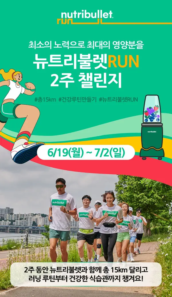 미국 인기 주방가전 브랜드 ‘뉴트리불렛(Nutribullet)’은 15km를 달리는 ‘뉴트리불렛런(RUN) 챌린지’를 진행한다고 12일 밝혔다.