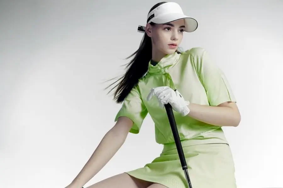 반팔티셔츠와 큐롯(바지형 치마)으로 구성된 레노마 골프의 라임 컬러의 여름 셋업은 최고의 퍼포먼스를 내기 위한 기능성과 시원하고 편안한 착용감을 제품에 구현해 냈다.