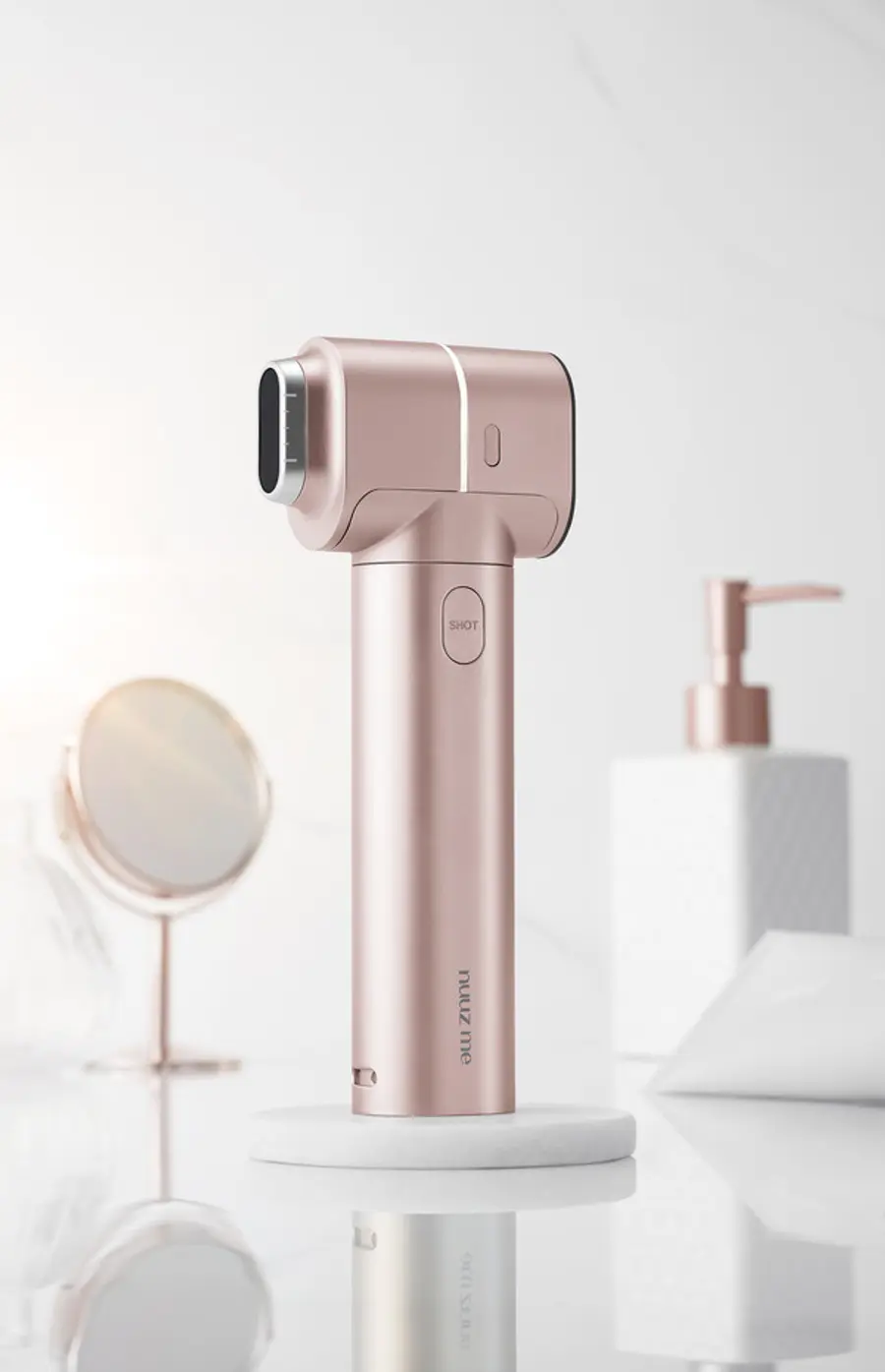 뉴즈미는 프리미엄 홈뷰티 기기로 집중 초음파 기술이 적용된 얼굴과 목 라인 탄력 미용기기다.