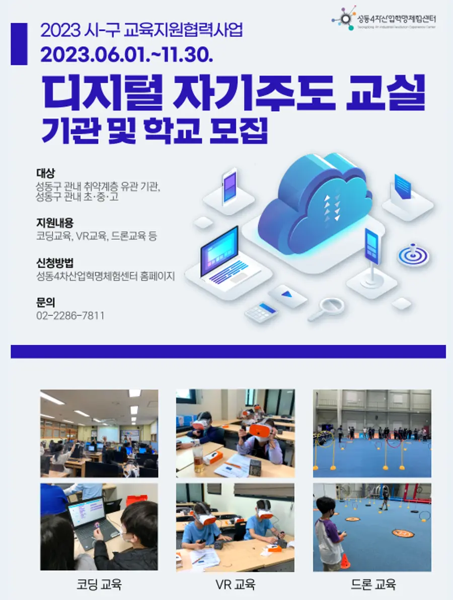 성동 4차산업혁명체험센터(이하 '센터')는 관내 디지털 취약계층을 대상으로 맞춤형 교육을 진행한다고 22일 밝혔다. 센터는 오는 11월 30일까지 서울시와 성동구의 교육지원협력사업으로 '디지털 자기주도 교실'을 운영한다.