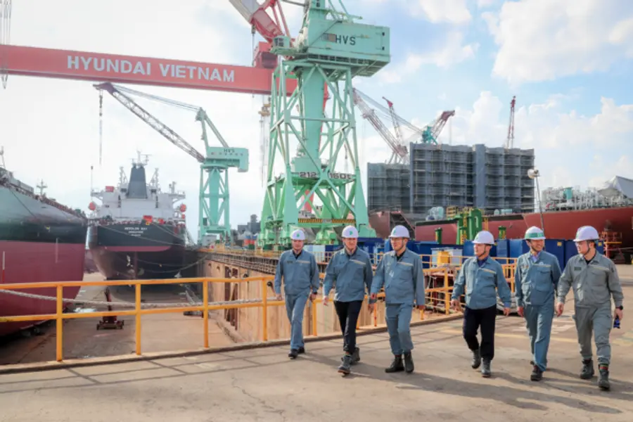 HD현대는 정기선 사장이 베트남 중부 칸호아성에 위치한 현대베트남조선을 방문해 공정 진행사항을 살피고, 임직원을 격려했다고 22일 밝혔다. 정기선 사장은 윤석열 대통령의 베트남 국빈방문을 앞두고 경제사절단의 일원으로 베트남을 찾았다.