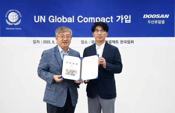 두산퓨얼셀은 23일 유엔글로벌콤팩트(UN Global Compact, UNGC)에 가입했다고 밝혔다.