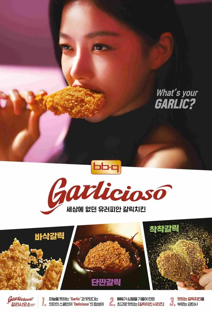 BBQ가 지난달 3일 출시한 갈리시오소 시리즈는 유럽과 한국 입맛에 익숙한 마늘의 풍미와 감칠맛을 담아 BBQ가 재해석한 '유러피안 갈릭치킨'이다. 갈리시오소 3종은 BBQ의 시그니처 황금올리브치킨을 베이스로 알싸한 마늘 시즈닝과 슬라이스를 더한 '바삭갈릭', 달달하고 짭짤한 허니소이 소스의 감칠맛을 더한 '단짠갈릭'과 허니소이 소스와 버터, 갈릭 후레이크까지 더해져 풍성한 맛을 자랑하는 '착착갈릭'으로 구성됐다.