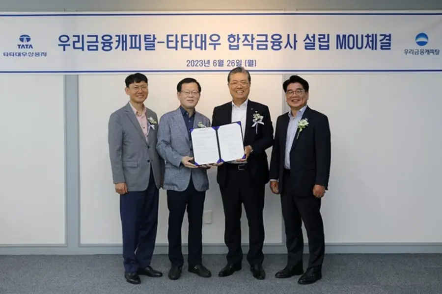 우리금융그룹 자회사인 우리금융캐피탈(대표 조병규)은 타타대우상용차와 할부금융 합작법인 설립을 위한 업무제휴 협약을 지난 26일 타타대우상용차 군산공장에서 체결했다고 27일 밝혔다.