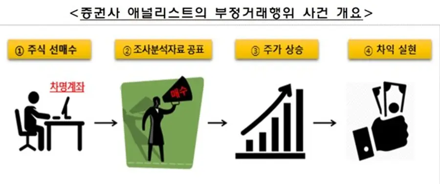 증권사 베스트 애널리스트가 자신이 작성한 보고서를 활용, 선행매매를 통해 5억2000만원대의 이익을 챙긴 것으로 드러나 충격을 주고 있다. 해당 애널리스트는 자신이 작성중인 특정기업의 '매수' 추천 리포트를 출고하기 전에 해당 주식을 미리 사고, 리포트 배포 이후 주식을 처분하는 식으로 부당 이익을 챙겼다.