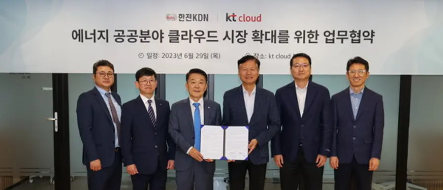 김장현 한전KDN 사장과 윤동식 KT클라우드 대표이사를 비롯한 양사 관계자들이 참석한 이날 협약식은 전력·에너지 공공분야 클라우드 네이티브 전환 활성화를 위해 추진된 것이다.