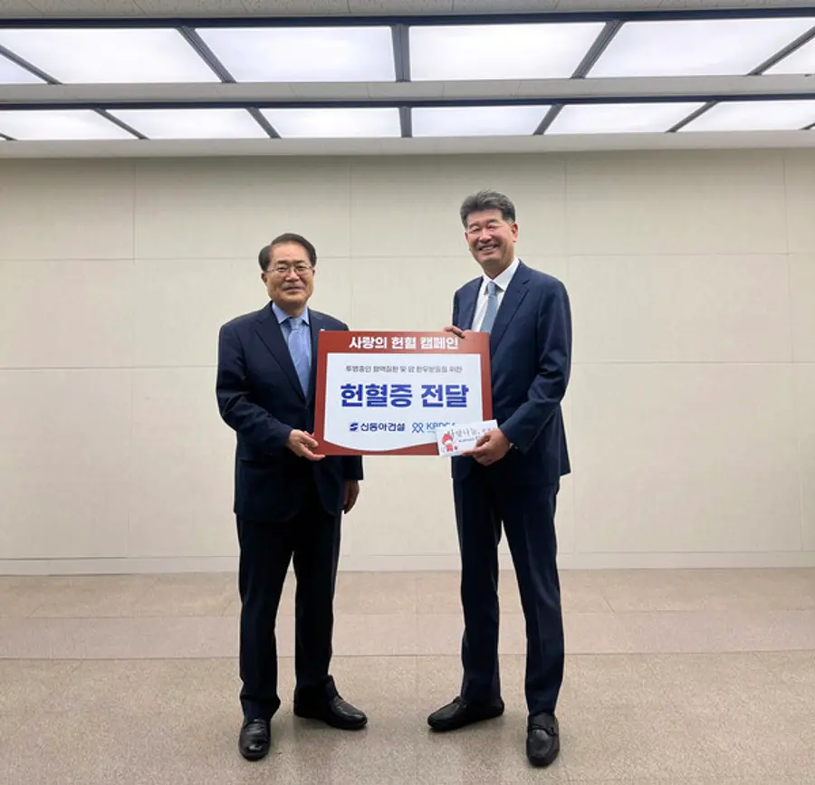 신동아건설이서울 영등포구에 소재한 사단법인 한국혈액암협회에 헌혈증 50장을 전달했다고 밝혔다 5일 밝혔다.