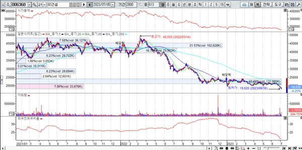 5일 주식시장에서 GS건설 주가는 전일보다 4.25% 떨어진 1만8030원에 마감했다. 이틀 전 기록했던 52주 최저가 1만8020원보다 10원 높았을 뿐이다. 지난 2020년 3월 코로나 발발로 급락했던 당시와 맞먹는 수준까지 떨어졌다.