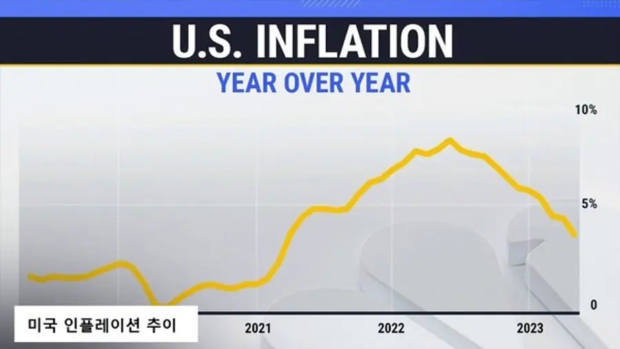 미국의 인플레이션이 지난 달 2년여 만에 가장 낮은 상승률을 보였는데, 5월 4%에서 6월에는 3%까지 낮아졌다. 인플레이션은 지난 해 6월 9% 정점 이후 급격히 떨어지고 있다. 최근 수치는 2021년 3월 이후 가장 느린 속도다.