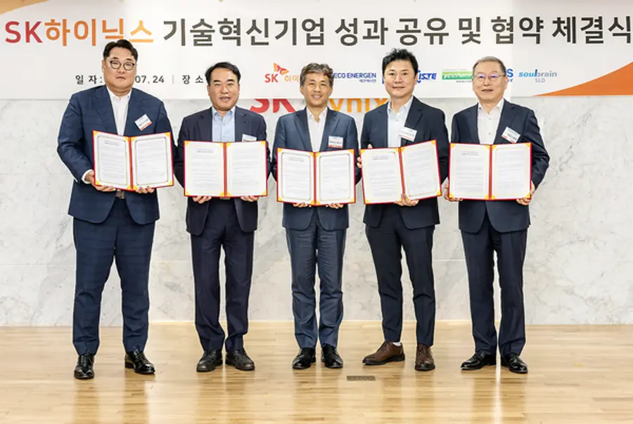 SK하이닉스는 와이씨켐, 솔브레인SLD, ISTE, 코비스테크놀로지 등 국내 소부장(소재‧부품‧장비) 기업 4사를 올해 기술혁신기업으로 선정하고 협약식을 가졌다고 24일 밝혔다.