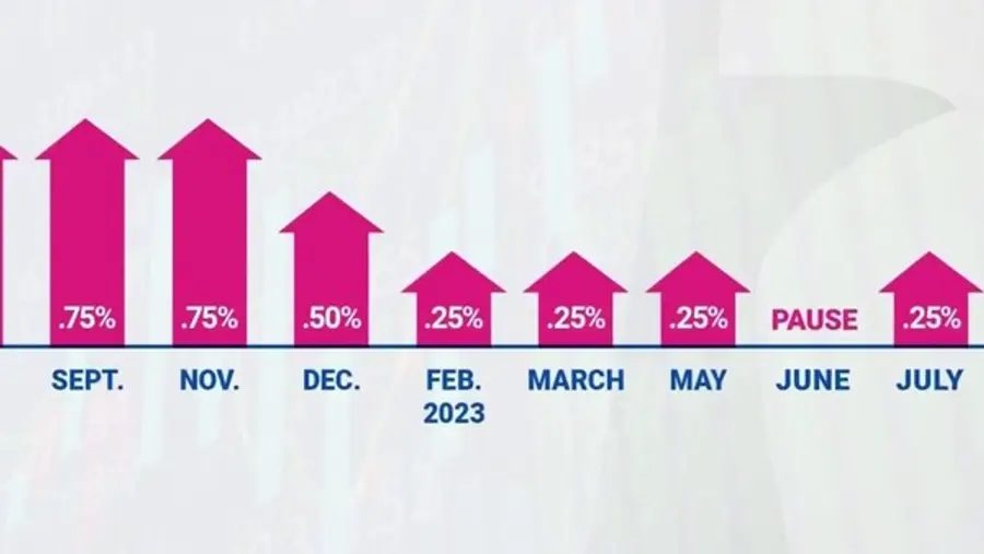 이는 연준이 지난 해 3월 인플레이션 싸움을 시작한 이후 11번째 금리 인상이며, 지난 봄 3개 지방 은행의 파산 이후 경제 상태를 평가하기 위해 중앙은행이 금리 인상을 일시 중지한 지 한 달 만에 나온 것이다.