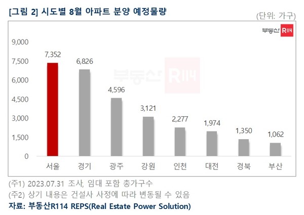 지방은 △광주 4596가구 △강원 3121가구 △대전 1974가구 △경북 1350가구 △부산 1062가구가 분양 예정이다. 특히 지난 5~7월 분양단지가 전무했던 경북과 전남에서 분양이 시작돼 눈길을 끈다.