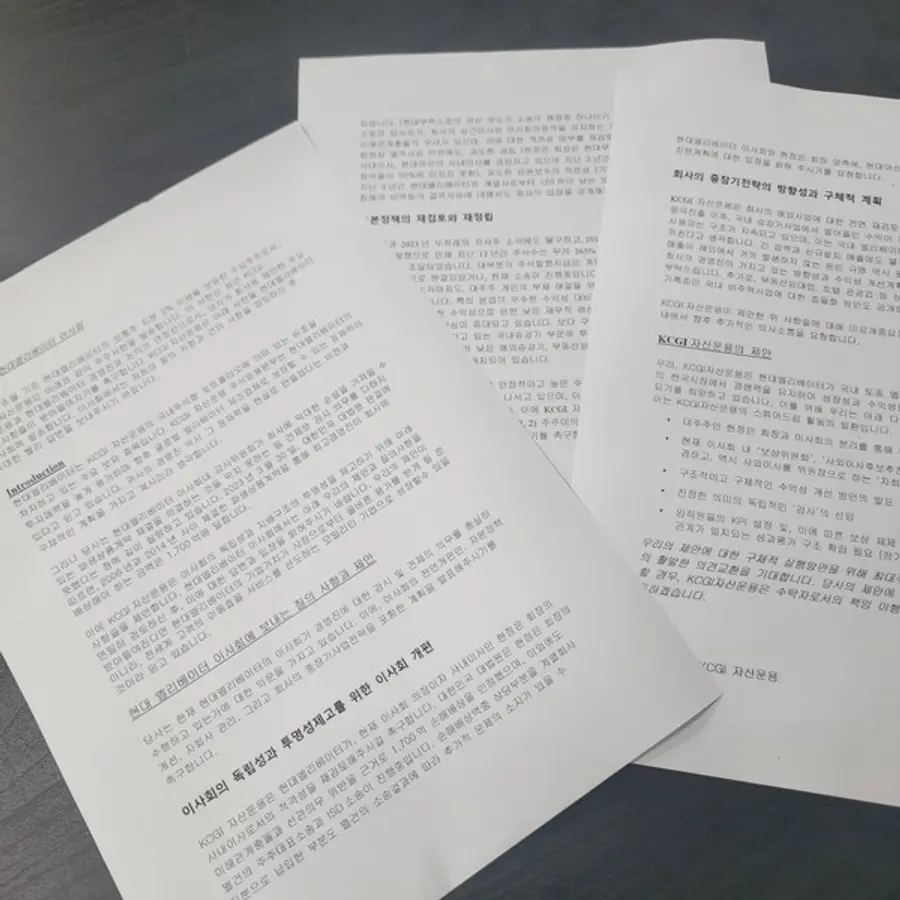 KCGI운용은 "구체적 실행방안을 위해 최대주주, 2대주주, 소액주주간의 활발한 의견 교환을 기대한다"며 "현대엘리베이터로부터 의미 있는 답변을 받지 못할 경우 추가적인 활동 전개를 검토하겠다"고 강조했다.
