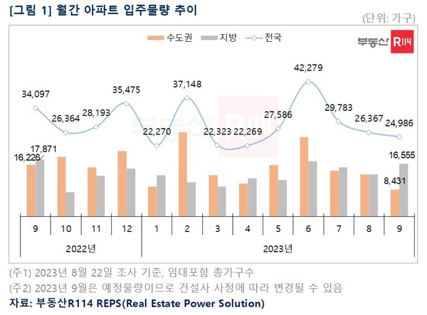 부동산R114 윤지해 수석연구원은 "임대차 시장이 안정세에 진입하는 가운데 9월 수도권 아파트 입주물량까지 줄어 다가오는 가을 이사철에는 임대차 가격의 회복세가 두드러질 전망"이라면서도 "10월·11월 입주물량은 평년 대비 많은 수준이 예상돼 역전세 리스크에 대한 관심의 끈은 견지할 필요가 있다."고 설명했다.