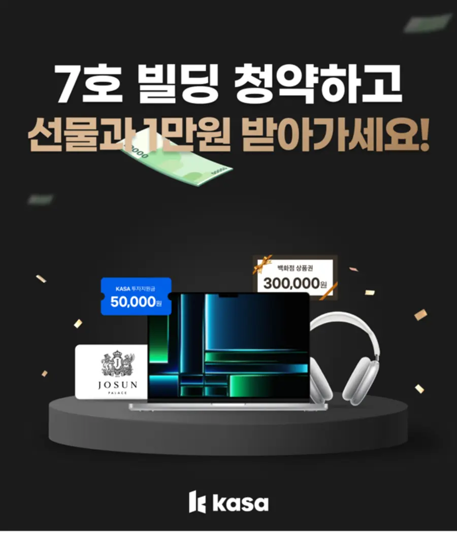 카사는 공모에서 선착순 1만명을 대상으로 공모에 참여만해도 1만원을 투자지원금으로 지급하는 이벤트를 진행한다. 공모 참여는 최소 5000원 이상 가능하다. 이 투자지원금은 추후 압구정 커머스 빌딩이 카사 플랫폼에 상장된 뒤 30일 간 해당 DABS를 보유한 투자자들에게 지급될 예정이다.