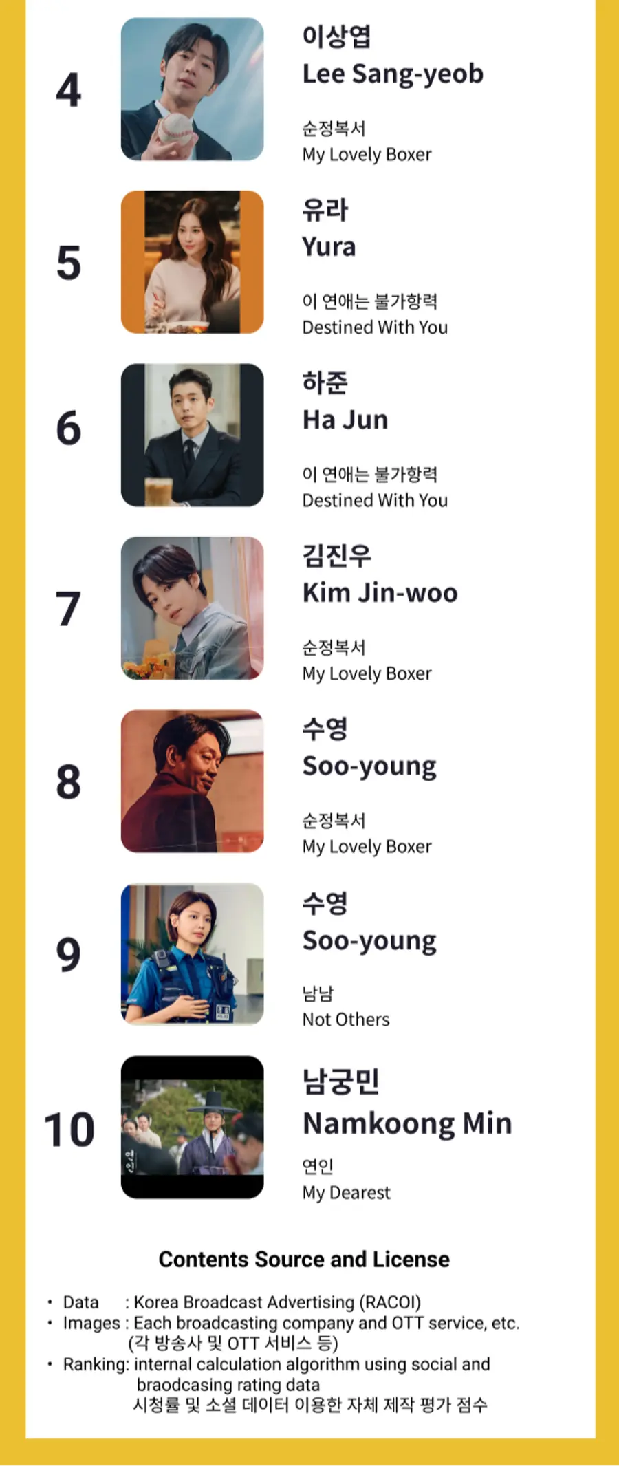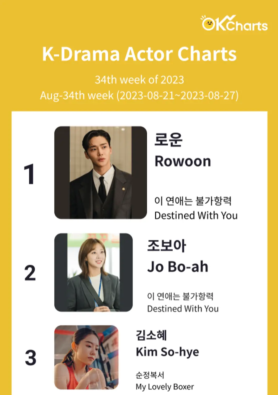 금주 TV 드라마 배우 1위는 '이 연애는 불가항력'의 로운 금주 TV 드라마 배우 차트입니다. 새로운 드라마 '이 연애는 불가항력'의 로운, 조보아, 유라, 하준이 각각 1위, 2위, 5위, 6위를 차지하였습니다. 또한 수정복서의 김소혜 3위, 이상엽 4위를 하였습니다. #드라마#K드라마#배우#로운#조보아#김소혜#이상엽#유라#이연애는불가항력#순정복서