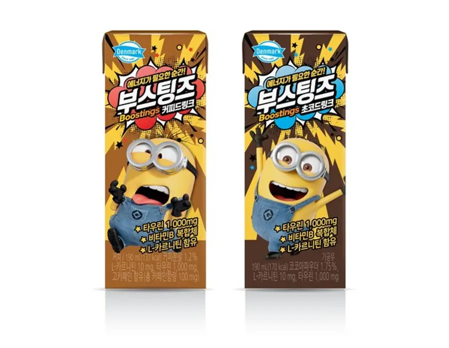 ‘덴마크 부스팅즈’는 커피, 초코우유에 타우린(1000mg)과 비타민B군(B1, B2, B6, 나이아신, 판토텐산), L-카르니틴(10mg) 등 기능성분을 첨가해 활력 충전에 도움을 줄 수 있는 에너지 가공유 제품이다.