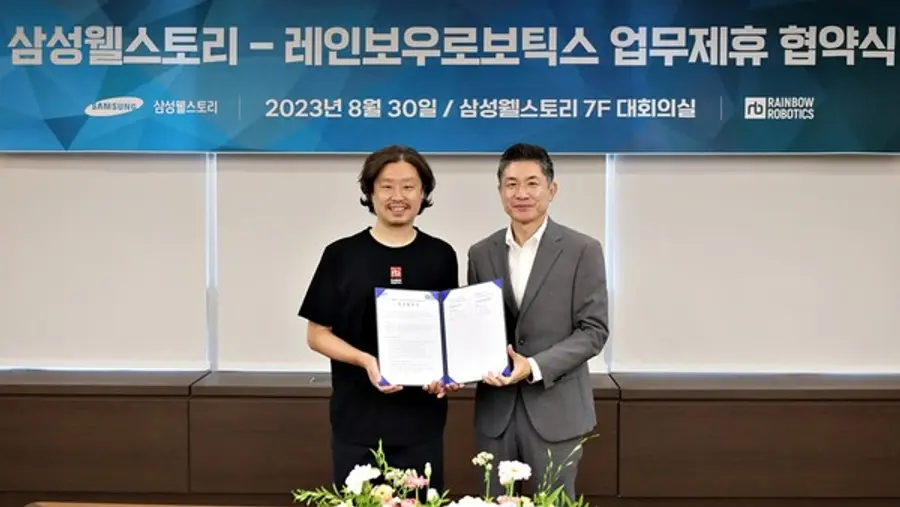 삼성웰스토리는 레인보우로보틱스와 단체급식에 로봇 자동화 솔루션을 도입하기 위한 업무협약을 체결했다고 31일 밝혔다.