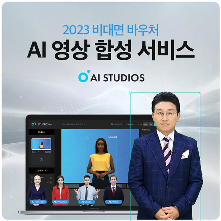 생성형 인공지능(AI) 전문기업 딥브레인AI(대표 장세영)는 2023년도 비대면 서비스 바우처 사업에 공급기업으로 선정됐다고 4일 밝혔다. 선정된 공급 서비스는 재택근무(협업툴) 분야의 AI 휴먼 영상합성 플랫폼 ‘AI 스튜디오스(AI STUDIOS)’다.