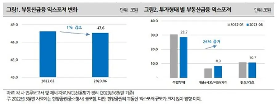 부동산 경기가 회복된다면 이러한 만기연장 방식이 부동산 익스포져 해소하는 방안이 될 수 있지만 부동산 경기 회복이 지연되면서 만기연장으로 인한 추가적인 이자부담 증가와 사업성 하락 등으로 최종 손실 규모는 오히려 확대될 수 있다고 설명했다.