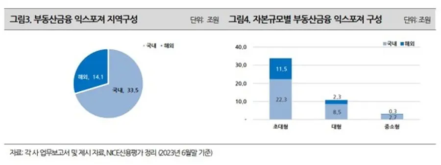 국내외 부동산 익스포져 상당부분이 만기연장되고 있으며, 펀드 등 부동산 익스포져는 건전성 지표에 포함되지 않는 점 등을 감안해야 한다는 지적이다.