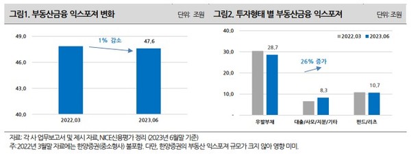 이들은 이어 "잠재부실 가능 익스포져 약 6조원 중 2023년부터 2026년중 만기 도래하는 자산이 매년 약 1조원에 달한다며 부동산 경기 회복이 지연될 경우 증권사가 실제 부담해야 하는 손실액이 점점 더 증가할 수 있다"고 말했다.