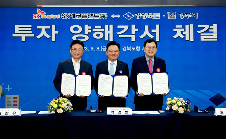 SK에코플랜트는 경상북도·경주시와 경주 이차전지 리사이클링 사업 추진을 위한 3자간 투자 양해각서(MOU)를 체결했다고 10일 밝혔다.