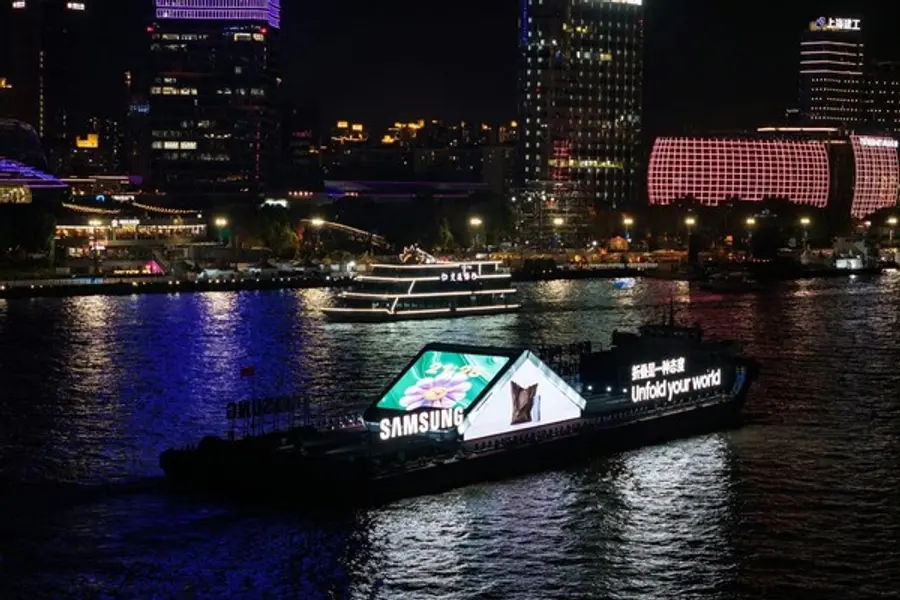 삼성전자는 지난 8일 중국 상하이에서 LED로 제작된 약 70m 길이의 '갤럭시 Z 플립5' 조형물 선박을 제작하고 선상 마케팅을 진행했다.