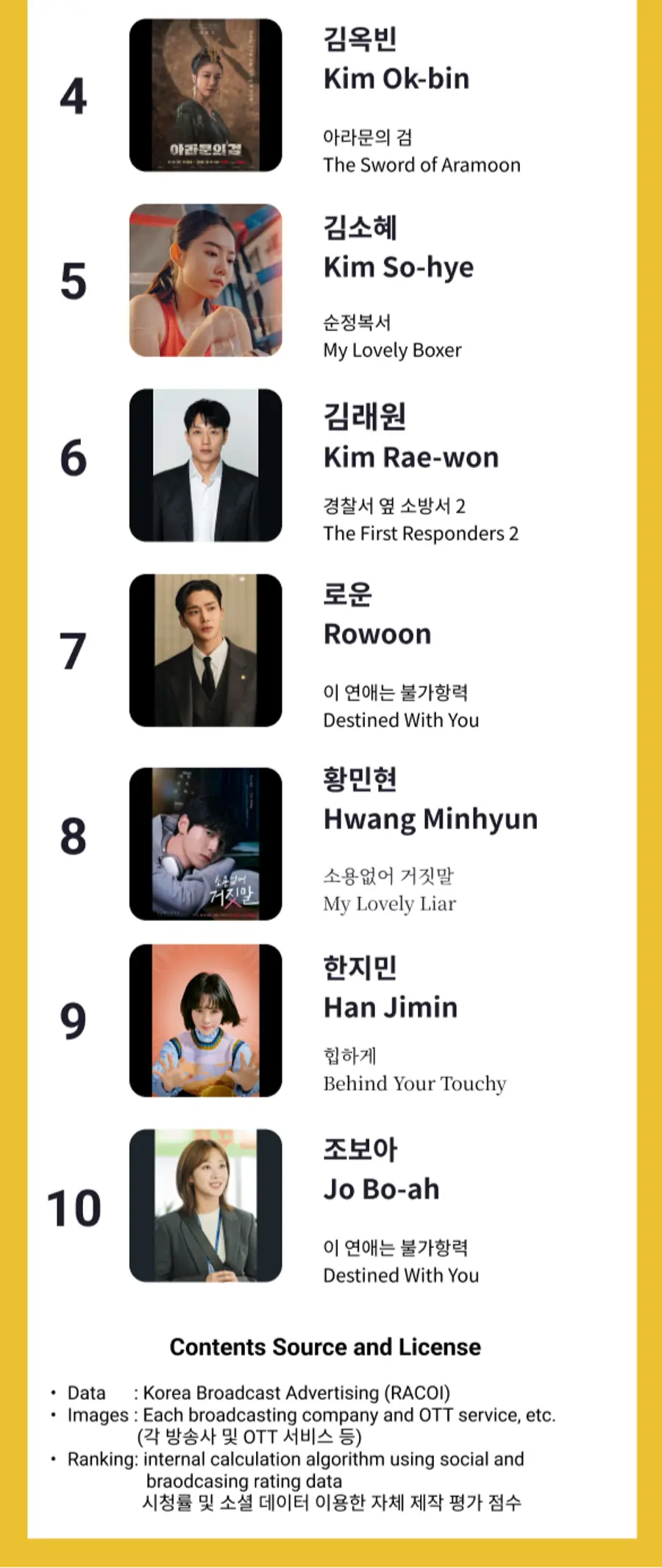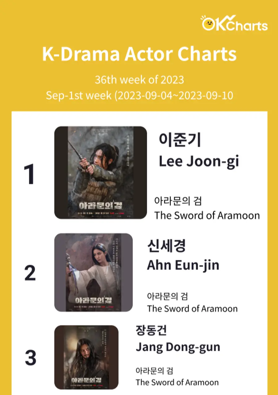 '아라문의 검'의 방영 시작과 함께 주연 배우들이 top 순위를 차지하였습니다.