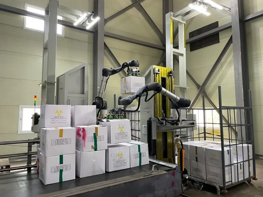 SK에코플랜트는 충청남도에 위치한 의료폐기물 소각장에 로봇을 이용한 폐기물 상차 과정의 자동화 실증을 성공적으로 마쳤다고 13일 밝혔다.