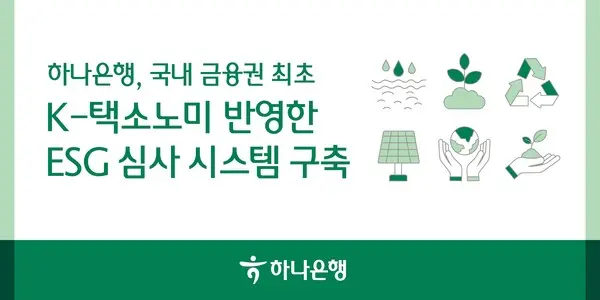 하나은행 ESG기획부 관계자는 "K-택소노미를 반영한 ‘ESG 금융 심사 시스템’ 구축으로 녹색금융에 대한 내부 관리 기준이 보다 명확해졌다"며, "고도화된 ESG 금융 시스템을 기반으로 녹색경제활동에 대한 체계적 금융 지원을 지속적으로 확대하겠다"고 밝혔다.