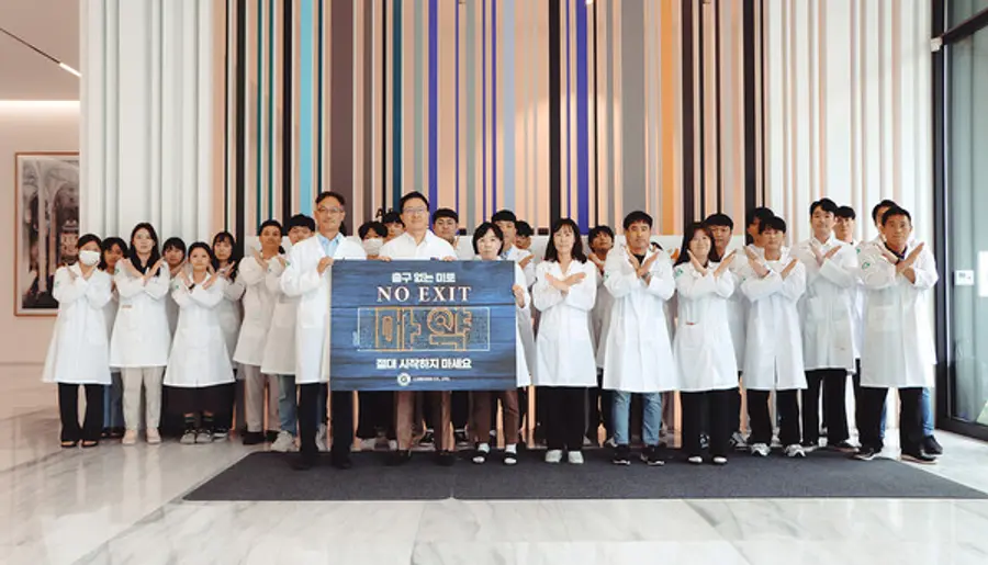 펩타이드 전문 바이오 케어젠은 정용지 대표이사가 직원들과 함께 마약 근절 및 예방을 위한 ‘노 엑시트(NO EXIT)’ 캠페인에 동참했다고 14일 밝혔다.