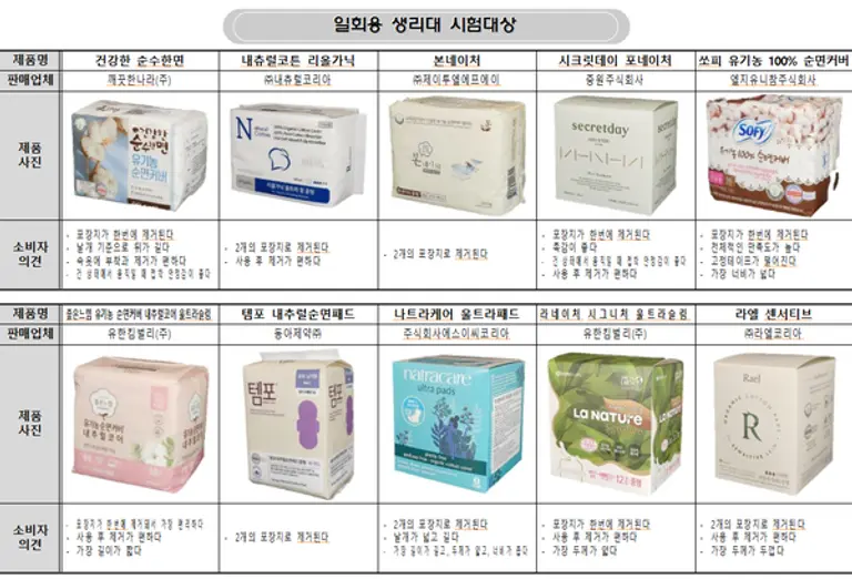 또 의약외품고시에서 정한 흡수량, 강도 등 품질과 안전성을 만족하고 있는지 확인한 결과, 전 제품이 관련 기준에 적합했다.