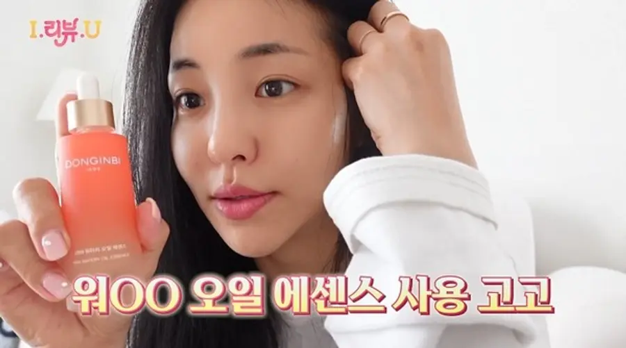 유정의 뷰티팁은 촉촉하고 산뜻한 사용감의 워터리한 오일 에센스를 사용하는 것. 특히, 보정이 필요없는 완벽한 셀카를 찍기 위한 추천템으로 ‘동인비 1899 워터리 오일 에센스’를 소개했다.