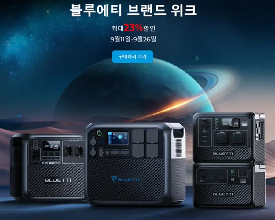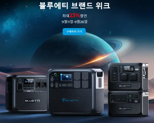 블루에티(BLUETTI)는 추석을 맞이하여 오는 26일까지 브랜드 위크 할인 이벤트를 진행하고 있다고 21일 밝혔다. 공식 홈페이지에서 EB70, EB3A, 대용량 파워뱅크AC200MAX를 만나볼 수 있으며 파워뱅크 제품을 원가 기준 최대 19% 할인하여 구매할 수 있다.