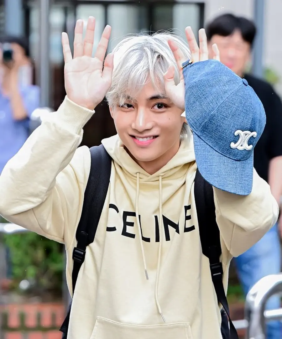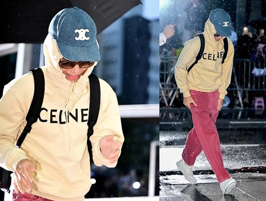 이날 뷔는 글로벌 대표 아이콘으로 활동하고 있는 프랑스 럭셔리 브랜드 셀린느(CELINE)의 크리에이티브 디렉터 에디 슬리먼이 선보인 셀린느 옴므 23 윈터 컬렉션의 후드 티셔츠와 볼캡 아이템으로 캐주얼한 패션을 연출해 시선을 사로잡았다.