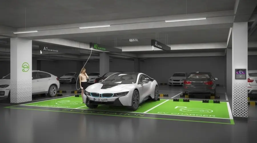 포레나 EV 에어 스테이션은 천장에서 커넥터가 내려오는 차세대 전기차 충전시스템으로 주차공간을 줄이지 않고 설치가 가능하다. 하나의 충전기로 3대까지 동시 충전이 가능하고 이미 준공된 단지에도 위치의 제한 없이 설치가 가능한 확장성을 가지고 있다.