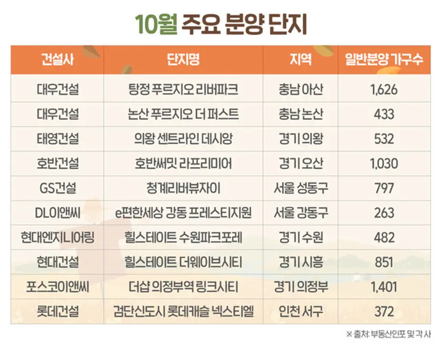 10월 공급을 알린 분양단지가 늘었다. 코로나 팬데믹 이전의 분양시장은 추석 등 명절 전후로 주택 수요자들의 관심이 떨어져 분양 단지가 감소했지만 최근에는 건설사가 온라인 수요자 공략에 적극적으로 나서면서 성수기·비성수기의 의미가 사라졌다.
