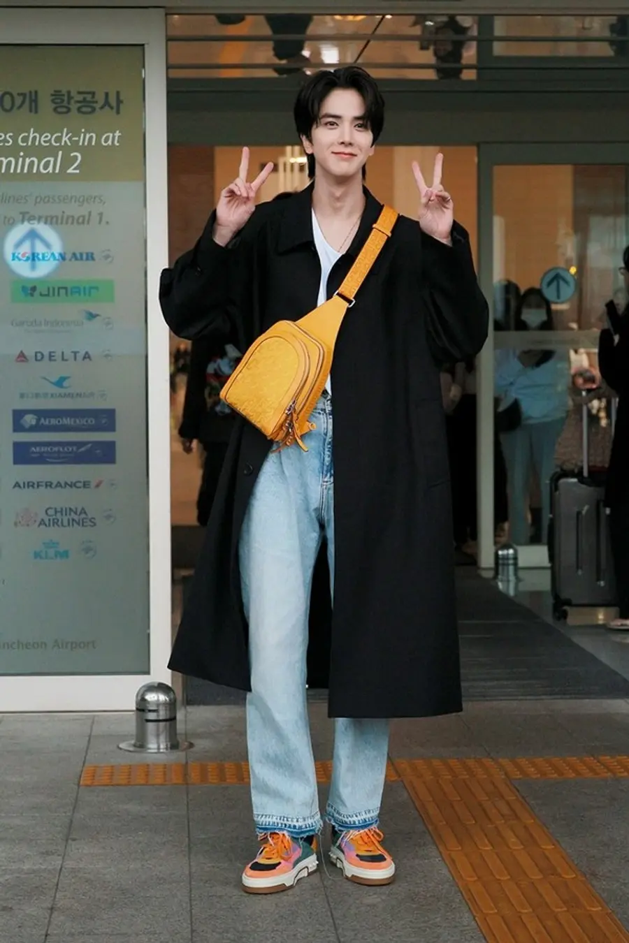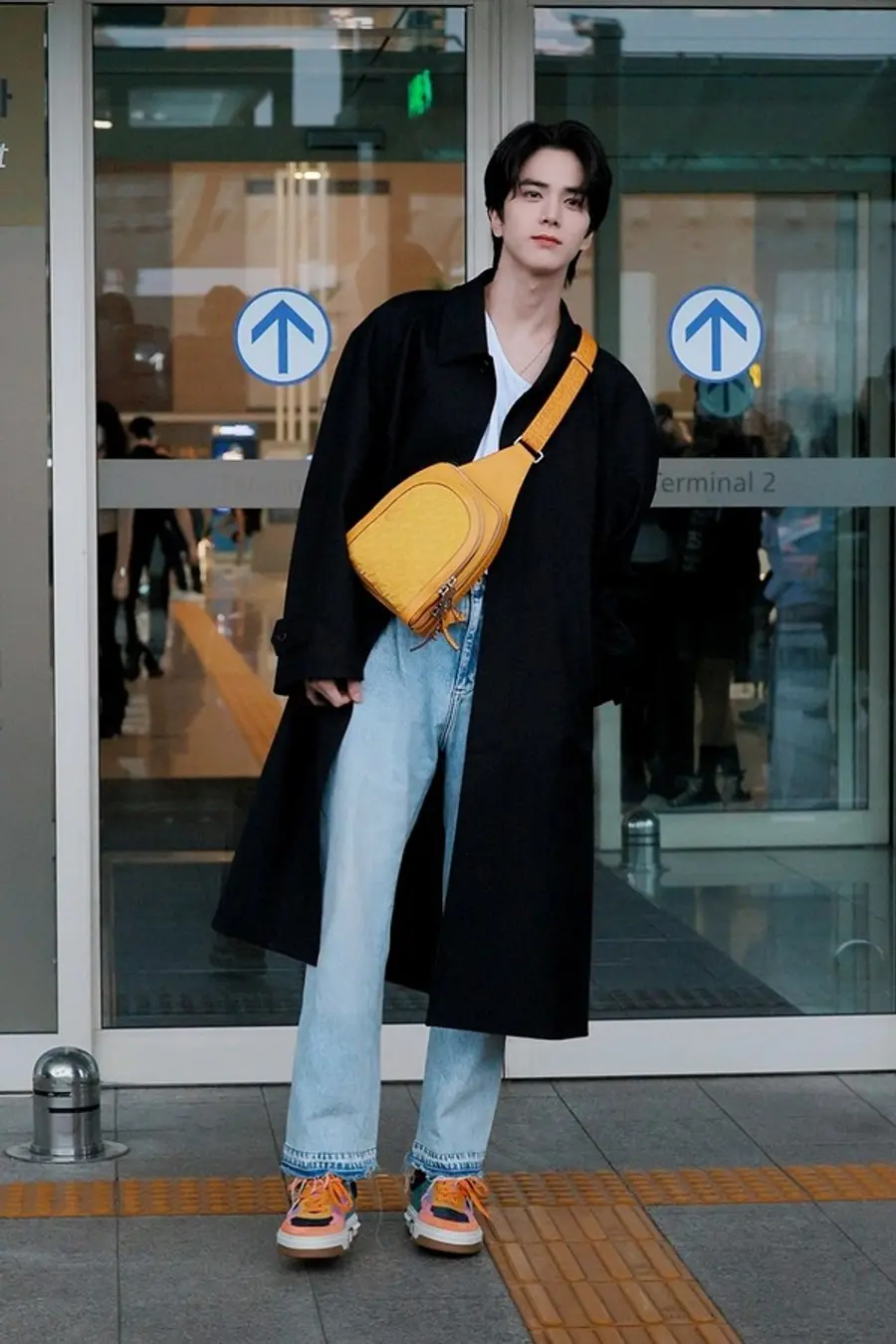 크리스찬 루부탱의 감성을 그만의 스타일로 경쾌하게 소화하며 패셔너블 한 공항패션을 완성했다.