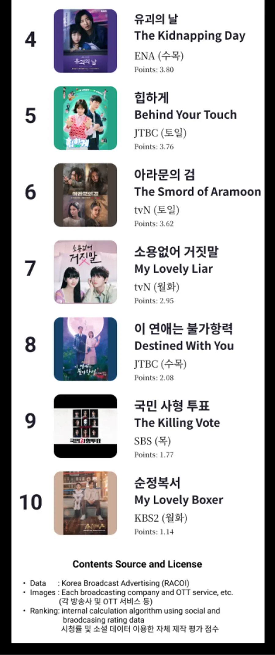 금주 1위는 '효심이네 각자도생' 입니다. 9월2째주 TV 드라마 순위 차트입니다. 1위 효심이네 각자도생 (7.23), 2위 7인의 탈출 (5.61), 3위 신병 2 입니다. 효심이네 각자도생이 방영 첫주에 1위를 차지하였습니다. #오케이차트#okcharts#k드라마#드마마차트#효심이네 각자도생#7인의 탈출#신병2#힙하게