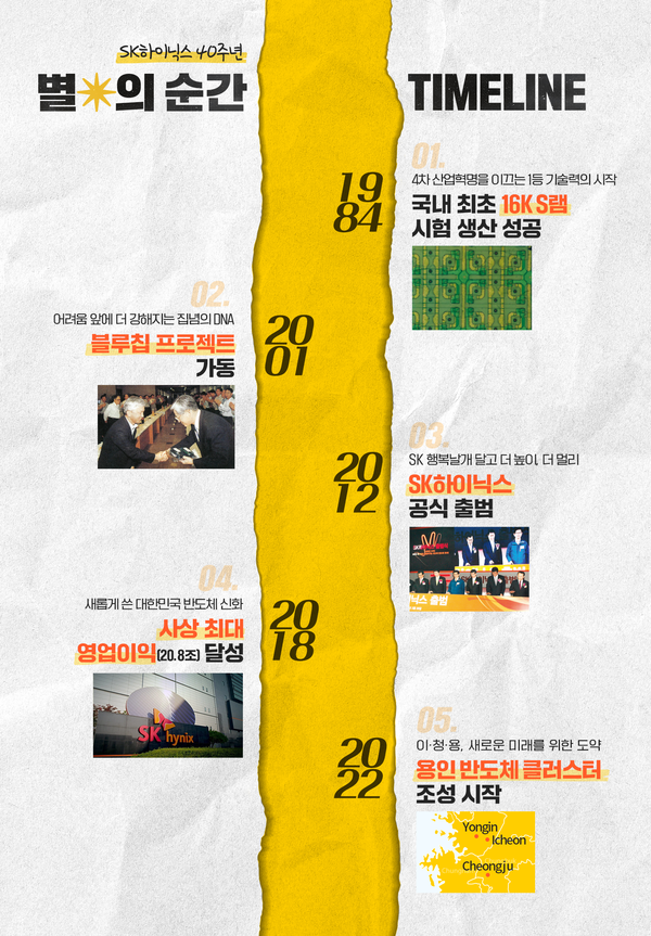 SK그룹 SK하이닉스가 창립 40주년을 맞아 사사에서 가장 인상 깊었던 5순간을 꼽았다.