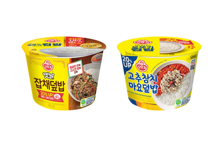12일 오뚜기는 옛날 잡채덮밥, 고추참치마요덮밥 등 컵밥 신제품 2종을 출시했다고 밝혔다.