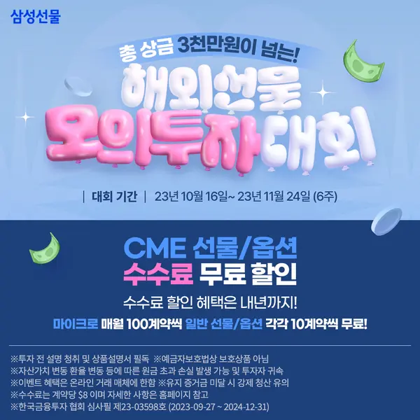 삼성선물은 지난 4일부터 해외선물옵션 이벤트를, 16일부터는 모의투자대회를 실시한다고 16일 밝혔다.