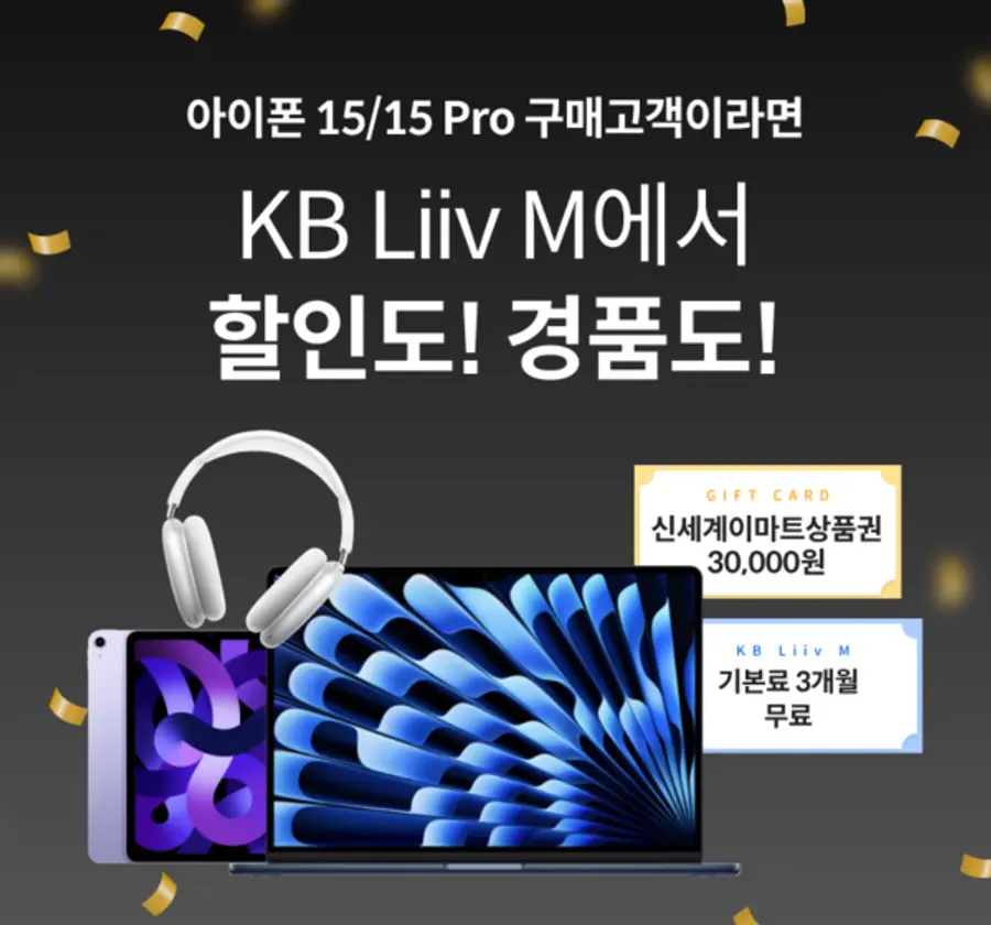 KB리브모바일은 ‘아이폰15 구매고객이라면, KB Liiv M에서 할인도! 경품도!’ 이벤트를 진행한다고 16일 밝혔다.