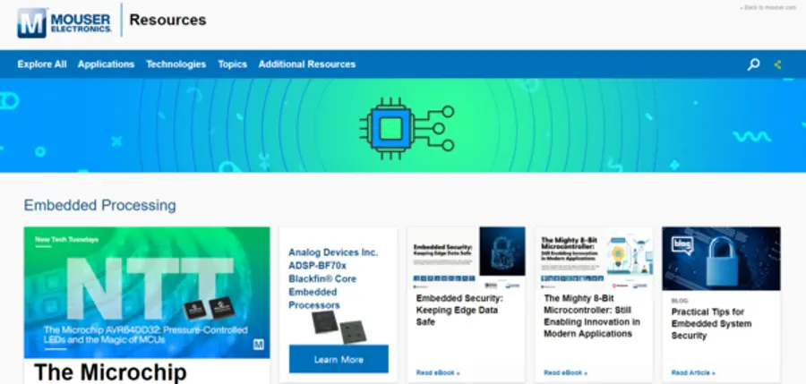 마우저에 따르면 임베디드 프로세싱 허브를 통해 방대한 콘텐츠를 제공해 임베디드 애플리케이션에 대한 새로운 정보를 지속적으로 업데이트하고 있다.