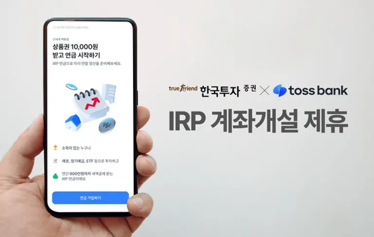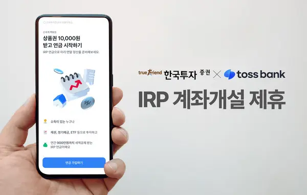 한국투자증권(사장 정일문)은 토스뱅크 모바일 앱에서 IRP(개인형 퇴직연금) 계좌개설 서비스를 제공한다고 17일 밝혔다. 토스뱅크를 통한 증권사 퇴직연금 제휴 서비스는 이번이 처음이다.