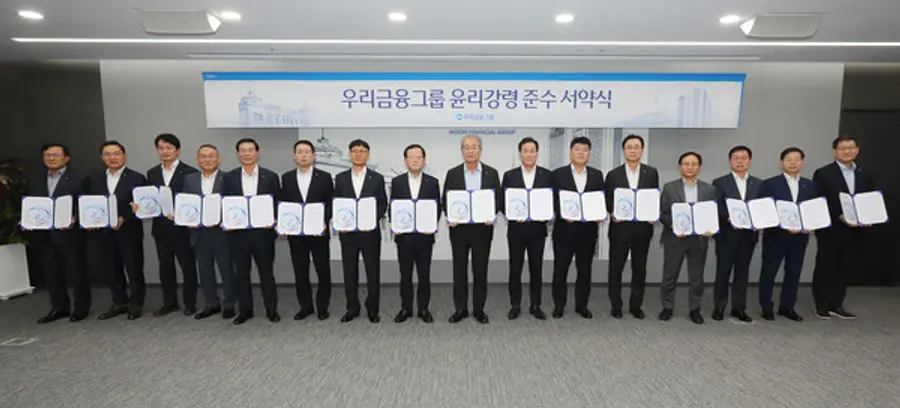 ‘윤리강령 준수 서약식’은 ‘그룹 윤리강령 가이드라인’에 맞춰 임종룡 회장을 비롯한 우리금융그룹 CEO들이 올바른 윤리강령과 행동기준을 반드시 실천해 ‘내부통제 실효성을 강화하고 이를 조직문화로 삼을 것’을 대내외에 약속하는 자리였다.